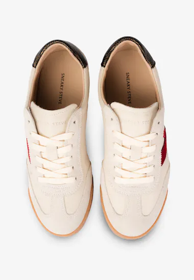 This sneaker is a very clean sporty sneaker made in leather and suede on a very slim and flat rubber out sole. We look both into our past at the same time as we throw ourselves into the future. The design gives this style a great retro look.